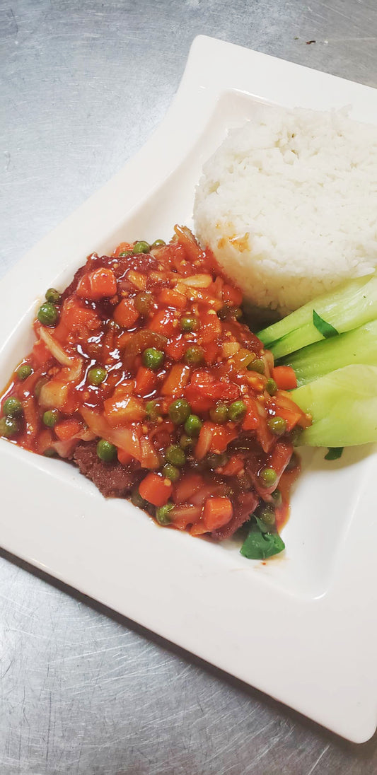 辣汁脆皮雞扒 Crispy Chicken w/ Spicy Sauce Rice Plate