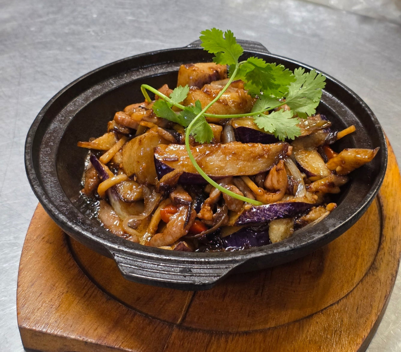 魚香茄子肉絲煲 Braised Sliced Pork & Eggplant w/ Spicy & Sour Sauce Clay Pot